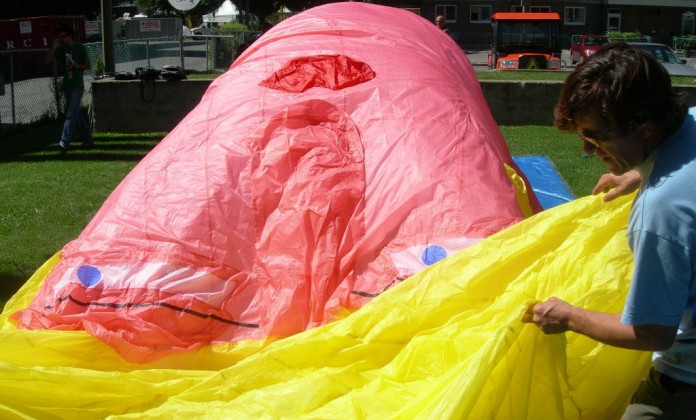 C'est ainsi que vont naitre en air et en voile les personnages emblématiques de Juste pour Rire, Rose et Victor, version gonflables. Viendront ensuite les Stickman, structures gonflables transparentes nées une fois encore de l'univers de Danielle Roy.