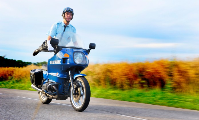 Les contrevenants n'ont qu'à bien se lâcher. Voici venir la Marichaussée. Seul maître à bord, GERAR'MARIE descend de sa moto avec ses bottes de cheval.