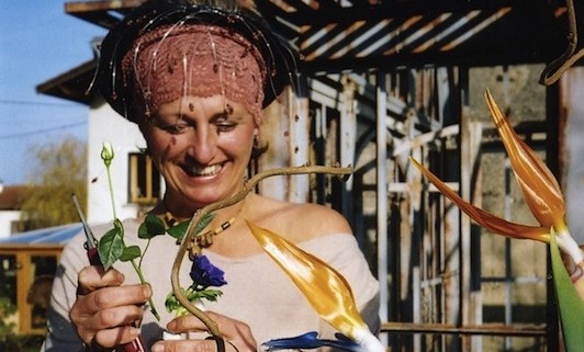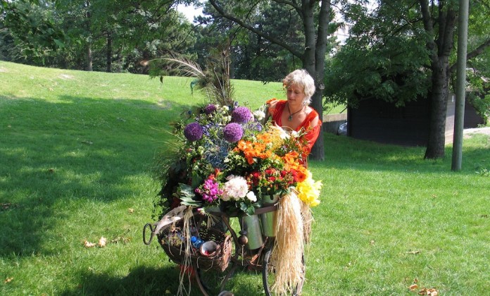 Le temps d’une rencontre, Garance cueille les fleurs de son jardin mobile et, les yeux dans les yeux, compose un bouquet,